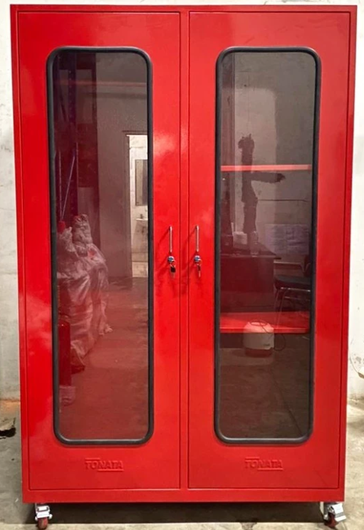 4. Equipped with 2 glass doors, 2 locks, 2 handles, and 4 x 3-inch wheels with brakes.