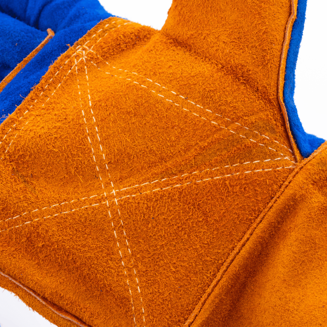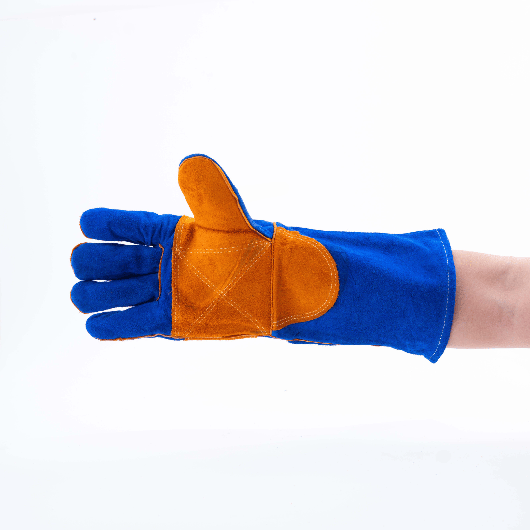Konstruksi Kulit Belah Premium — Kulit tahan lama memberikan ketahanan kuat terhadap abrasi, percikan api, dan permukaan kasar yang umum ditemui dalam pekerjaan pengelasan dan fabrikasi.
